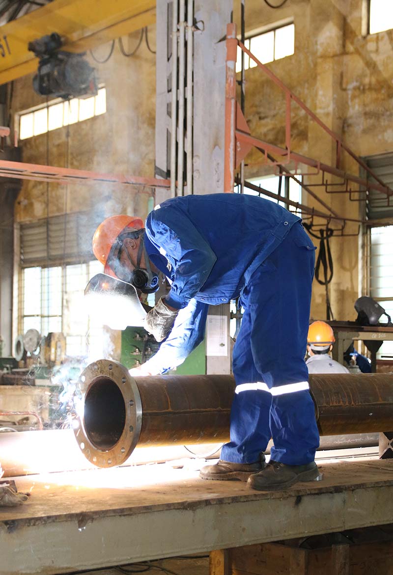 Công nhân đóng tàu Sông Cấm trong lao động sản xuất