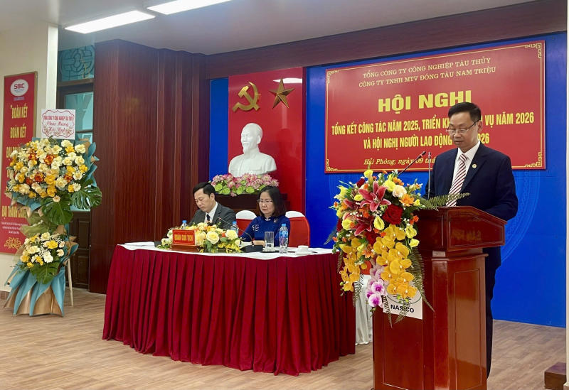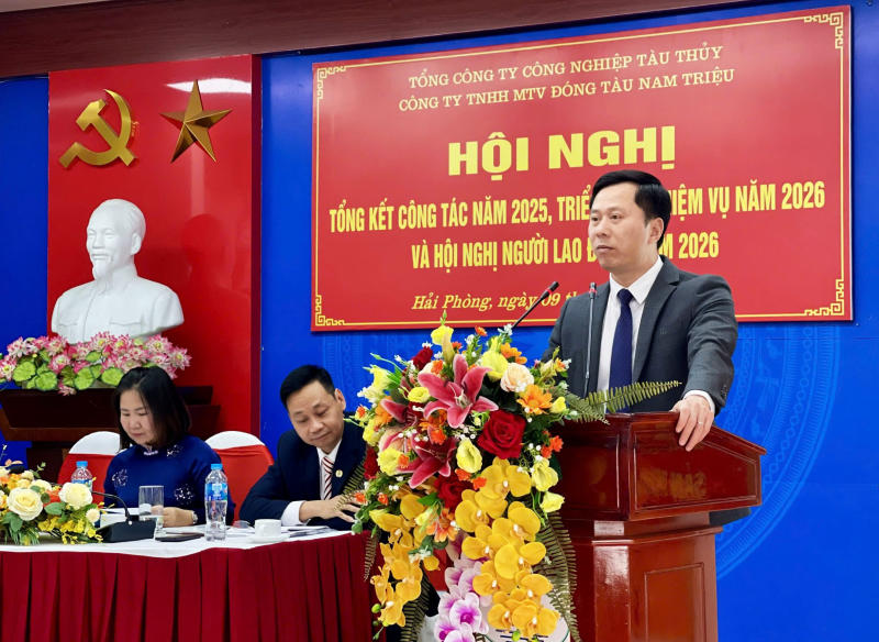 Về phương hướng nhiệm vụ, kế hoạch năm 2026, thực hiện sự chỉ đạo của Bộ xây dựng và Tổng công ty Công nghiệp tàu thủy về việc duy trì hoạt động sản xuất kinh doanh, chủ động làm việc với các đối tác để tiếp tục thực hiện các hợp đồng đã ký kết, tạo công ăn việc làm và chăm lo cho người lao động trong quá trình triển khai thực hiện Nghị quyết 220/NQ-CP về xử lý SBIC và các đơn vị thành viên. Theo đó, Công ty Đóng tàu Nam Triệu đã tập trung mọi nguồn lực đặc biệt là công tác xúc tiến thị trường với mục tiêu quan trọng hiện nay là đảm bảo đủ việc làm cho CBCNV-NLĐ, giữ ổn định hoạt động sản xuất kinh doanh của Công ty và giảm thiểu đến mức thấp nhất các ảnh hưởng tiêu cực đến quá trình thực hiện các sản phẩm đã và sẽ ký hợp đồng với các khách hàng. Trên tinh thần đồng lòng và đoàn kết, Công ty vẫn đang nỗ lực tìm kiếm các đơn hàng mới và tận dụng những gì hiện có để ổn định sản xuất, đảm bảo việc làm cho người lao động đồng thời hoàn thành vượt mức kế hoạch Tổng công ty đã giao năm 2025 và triển khai các dự án mới trong năm 2026.