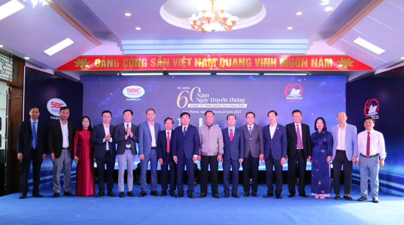 Lãnh đạo Tổng công ty Công nghiệp tàu thủy, lãnh đạo Công ty Đóng tàu Nam Triệu chụp ảnh lưu niệm với lãnh đạo Công ty qua các thời kỳ