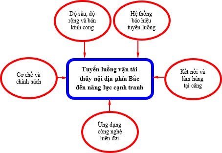 Nghiên cứu đưa ra các giả thuyết về yếu tố tuyến luồng thủy nội địa khu vực phía Bắc tốt cho năng lực cạnh tranh ngành vận tải thủy nội địa, gồm: