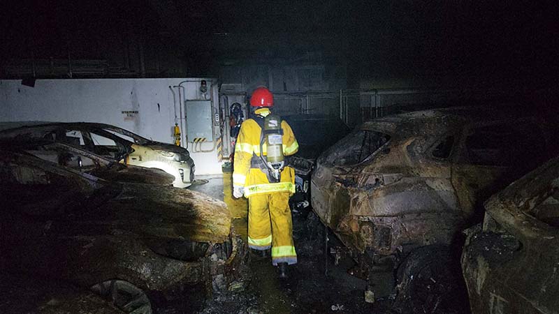 Lực lượng Cảnh sát PCCC và CNCH kiểm tra, trinh sát nắm tình hình các tầng hầm đám cháy đã được dập tắt