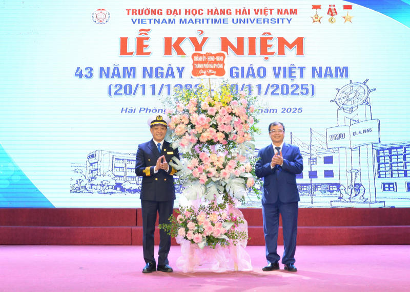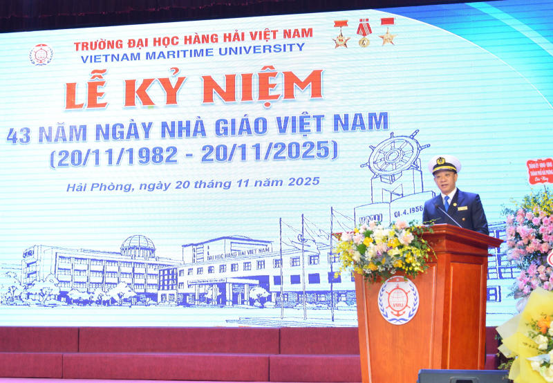 Sáng 20/11/2025, Trường Đại học Hàng hải Việt Nam đã tổ chức Lễ Kỷ niệm 43 năm ngày Nhà giáo Việt Nam” (20/11/1982 - 20/11/2025). Tới dự và chung vui với thầy và trò trường Đại học Hàng hải Việt Nam có đồng chí Nguyễn Minh Hùng - Phó Chủ tịch UBND thành phố Hải Phòng; đồng chí Đỗ Thị Phong Lan - Phó Vụ trưởng Vụ Tổ chức cán bộ, Bộ Xây dựng; các thầy, cô nguyên là lãnh đạo trường, nguyên cán bộ chủ chốt nhà trường qua các thời kỳ, Ban Chấp hành Hội Cựu giáo chức và đại diện Câu lạc bộ truyền thống Trường Đại học Hàng hải Việt Nam tại thành phố Hồ Chí Minh, các Nhà giáo nhân dân, Nhà giáo ưu tú, cùng các thầy, cô giáo đại diện cho hơn 900 cán bộ, giảng viên của Nhà trường